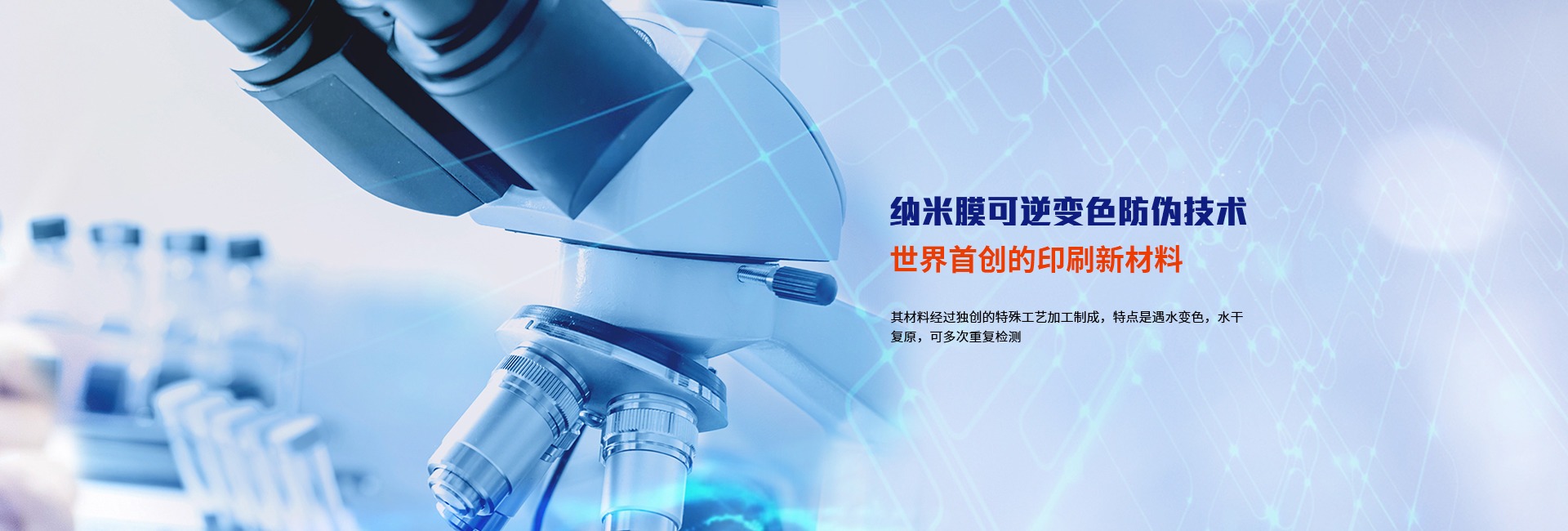 核徑跡防偽技術:是國家科技部唯一列為國家重點推廣的防偽科技項目;納米水顯膜可逆變色材料:世界首創高科技印刷包裝防偽新材料。